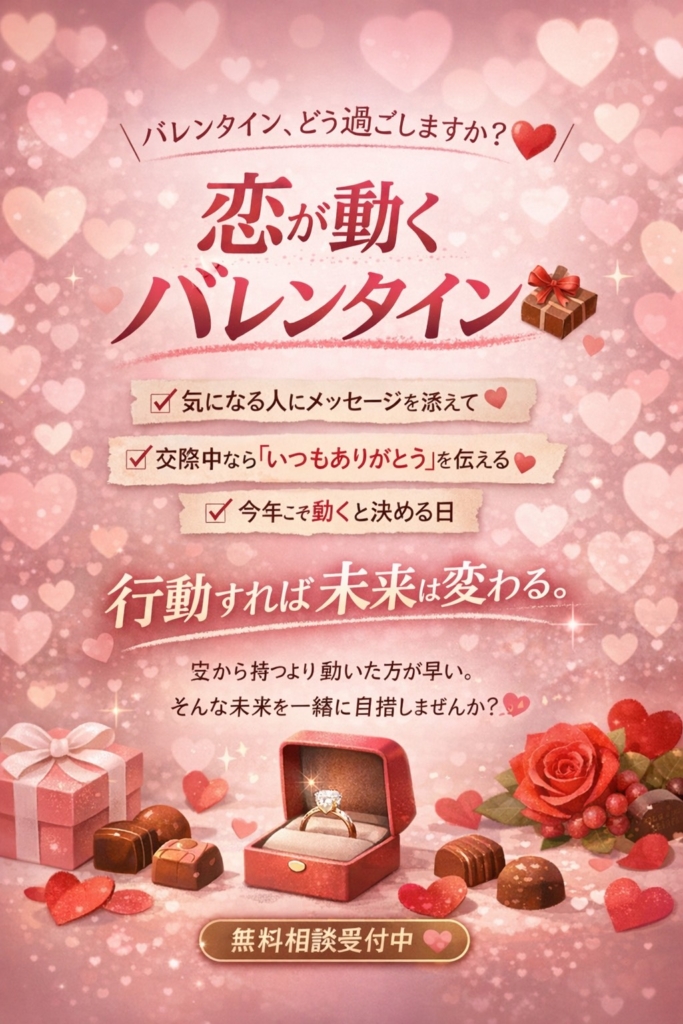 \今日のバレンタイン、どう過ごしますか?💝/ バレンタインは“気持ちを伝えるきっかけの日”💕その手助けをしてくれるのがチョコ🍫💕です(^^♪ 婚活中の方こそこのイベントを味方にしてほしい✨ ✔ 気になっている人に一言メッセージを添えてみたり、✔ 交際中な... -
